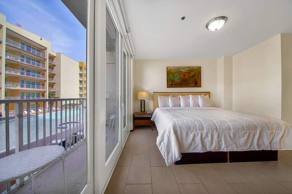 The studio provides a dining area, a wardrobe, as well as a private bathroom boasting a shower and a hairdryer. The studio's kitchenette, which has a refrigerator and a microwave, is available for cooking and storing food. The spacious air-conditioned studio features a flat-screen TV with cable channels, a mini-bar, a tea and coffee maker, a seating area as well as pool views. The unit has 2 beds.